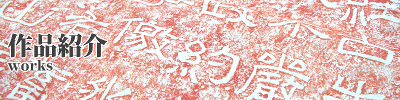 刻字、陶芸と書のコラボ作品、石膏ボードを使い篆刻をコラージュした作品など色々と取り組んでます。